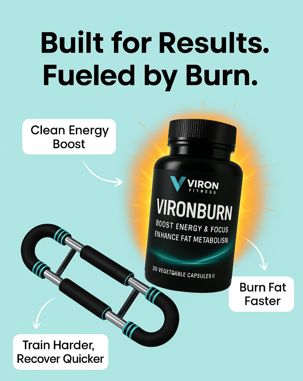 VIRON™ is the only home system that combines compact resistance training (Alpha Bar) with a clean energy formula (Burn) — for visible gains and real momentum.
